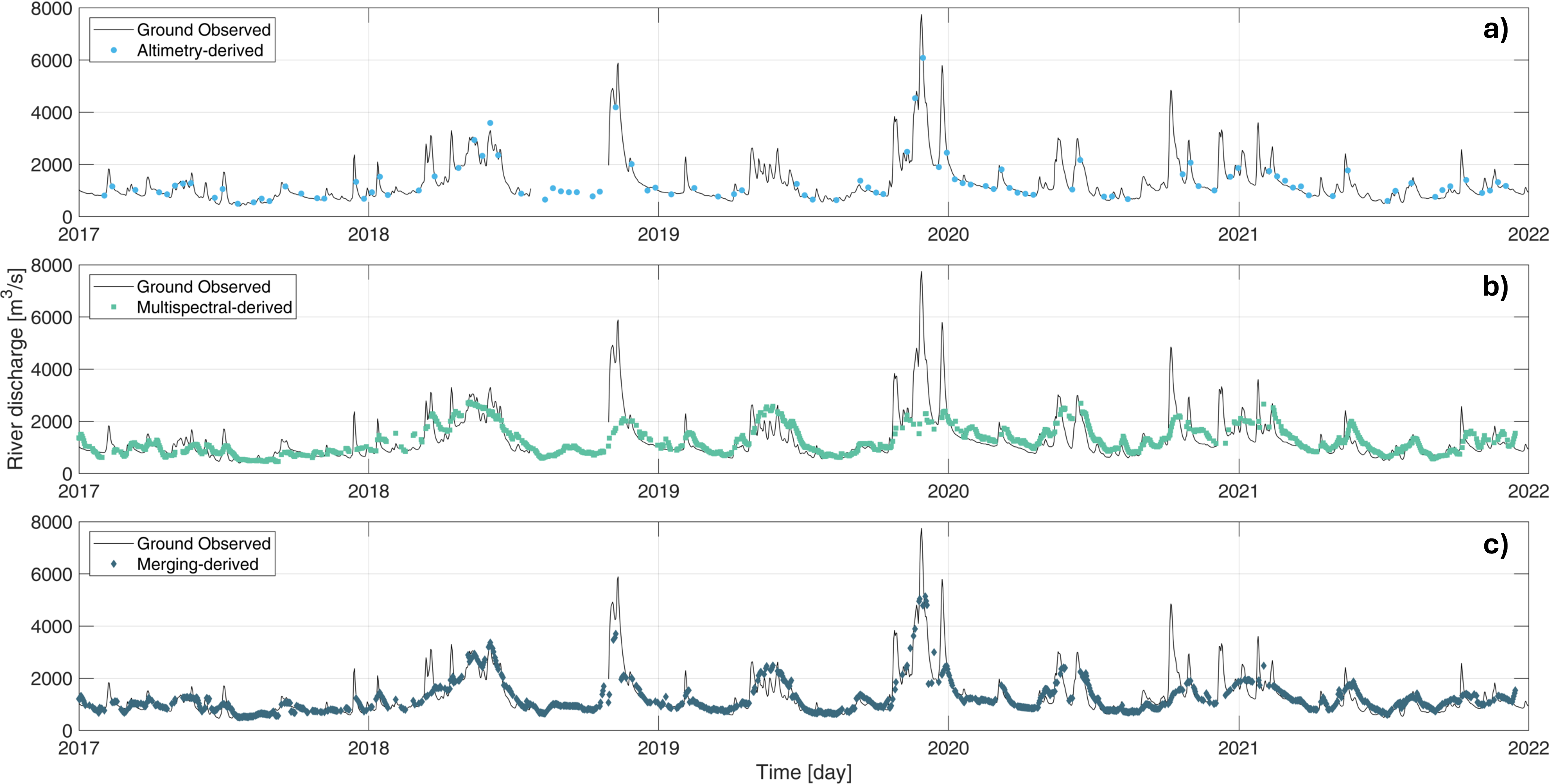 - develop a satellite-based algorithm that integrates radar altimetry and optical reflectance indices to estimate daily river discharge;