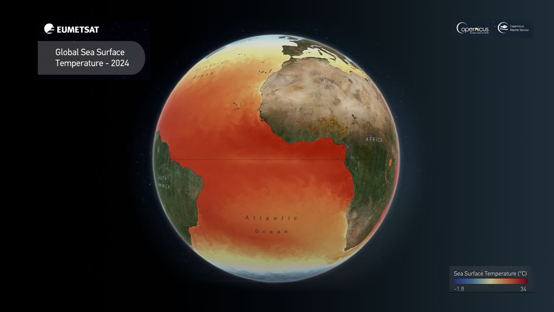 This week’s image shows sea surface temperatures in the Atlantic Ocean in 2024, as monitored by satellites such as the Copernicus Sentinel-3 series operated by EUMETSAT.